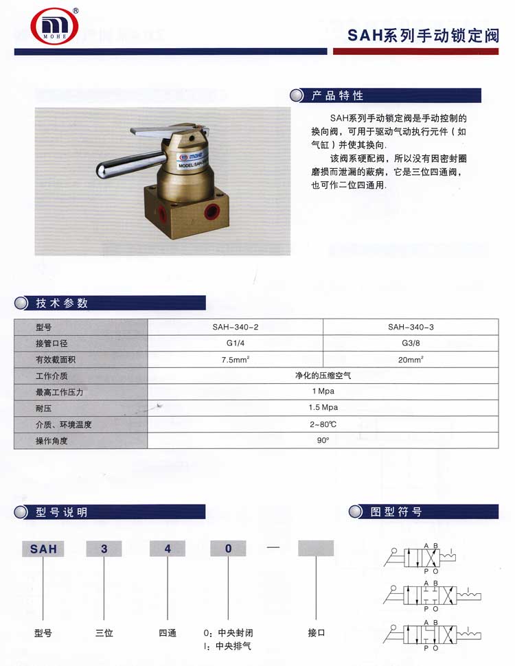 > SAH-340-2,手動閥,MOHE鎖定閥,MOHE CYLINDE,SAH系列手動鎖定閥