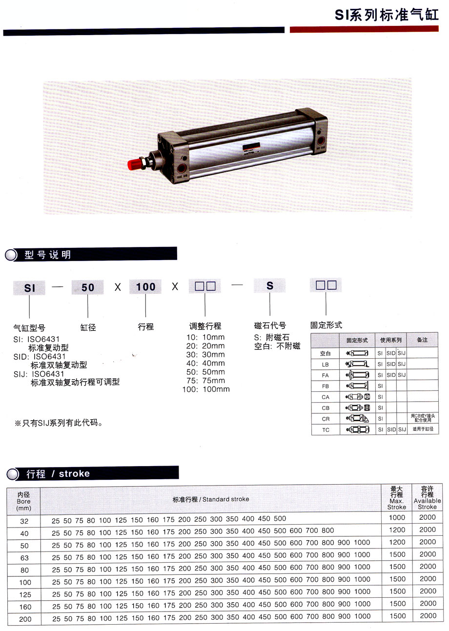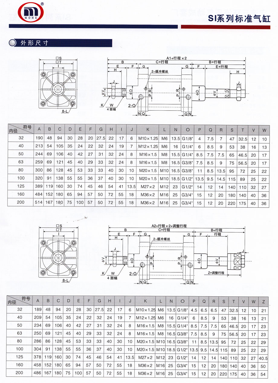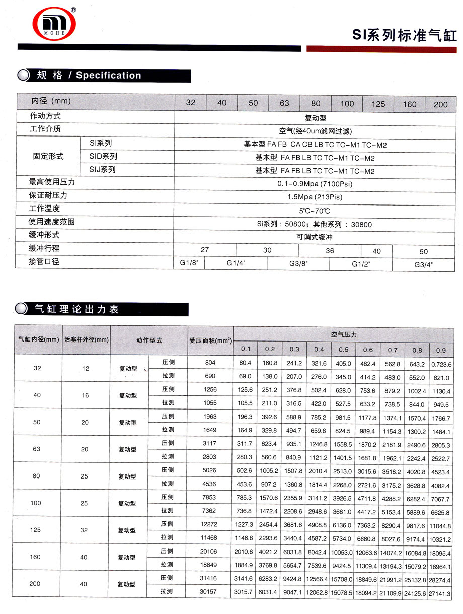 名稱:MOHE CYLINDER,MOHE氣缸,SI系列標(biāo)準(zhǔn)氣缸 |